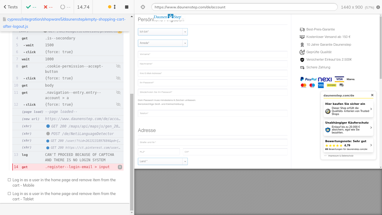 Test -- Log in as a user in the home page and remove item from the cart - Desktop (failed).png